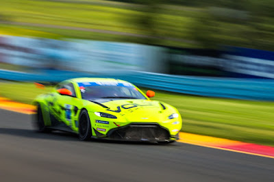 Racing under the baking sun of the up-state New York circuit, yesterday’s Qualifying had seen the series guesting #23 Notlad Racing AMR of Pat Gallagher take a P3 starting position behind two front line McLaren 570’s. The #09 Stoner Car Care with Automatic AMR of Brandon Kidd was next fastest in P7 with the bright yellow #7 Volt Racing with Archangel Aston of Alan Brynjolfsson an uncharacteristic P9.