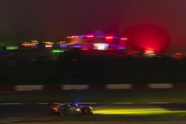 With over one hundred and twenty mixed class race cars with an incredible nine Aston Martin Racing Vantage GT3 and GT4 cars taking the start on Saturday afternoon, the race would not reach midnight of the opening night before the conditions had deteriorated sufficiently enough for Race Control to call a temporary halt to the proceedings.